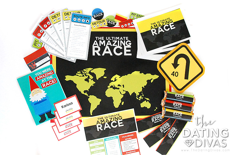 The Amazing Race Game has it all: a 16-piece party pack of adventure, challenge, and teamwork – the perfect recipe for a great date night. My husband and I LOVE to travel so when we first watched the reality show The Amazing Race, it quickly became one of our favorites! First, we love seeing all of the different countries, and then came the challenges that matched the various cultures and we were hooked. Because of our love for this show, we have put together everything you need to host your very own version of The Amazing Race! The pack includes twelve unique Amazing Race challenges that can work for any type of group gathering and be played in any hometown! Finally, the best part is, we recently updated everything to add customizable features so you can personalize your Amazing Race game to your specific party.