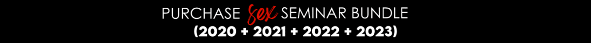 Or if you want QUADRUPLE the sexy goodness, grab the 2020 + 2021 + 2022 + 2023 Sex Seminar videos too for JUST $46 total! (That’s a total of 77 sex lessons!)