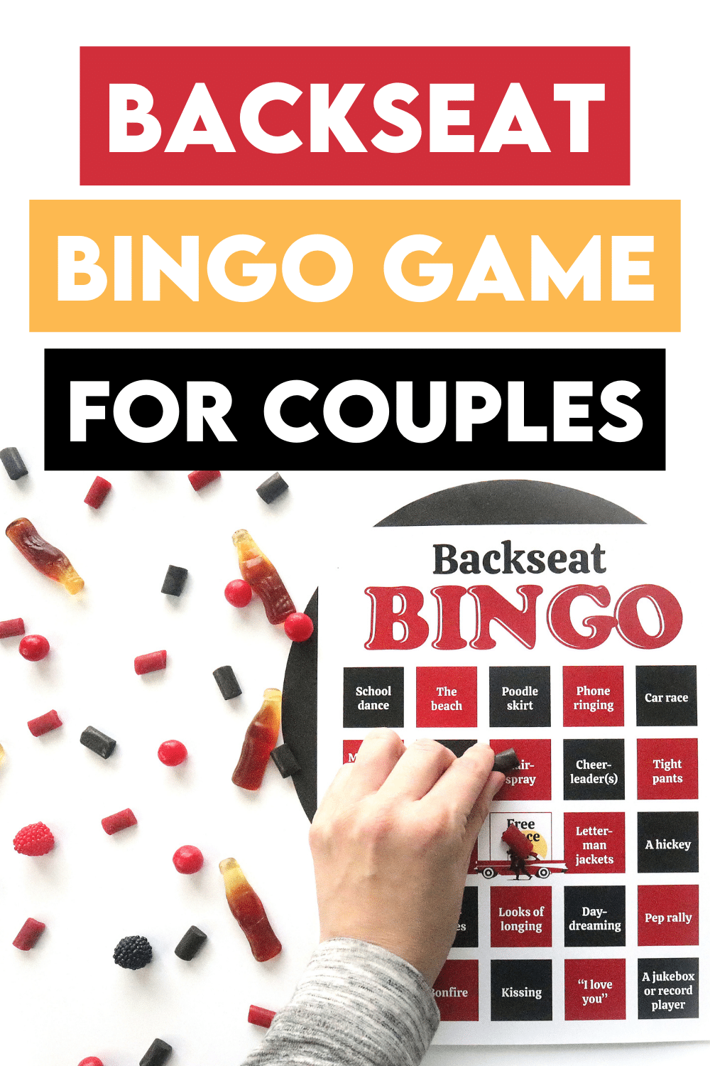On the night of your date, you’ll need one Backseat Bingo card, your bingo card markers, and the movie Grease ready to go! The game must be played while you’re watching Grease, or it won’t work!