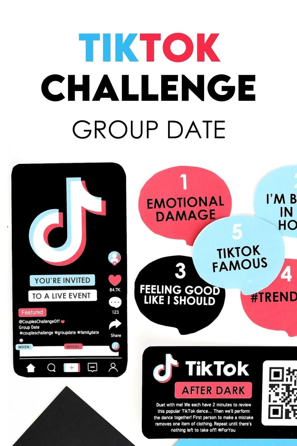 To kick off your TikTok group date, you’ll need a cute and themed invite! We created this TikTok-inspired invitation you can send out to your favorite couple friends! Isn’t it AMAZING?! Just fill in the time and place, and you’ll be ready for the ultimate Challenge-Off!