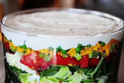 84. 7 Layer Salad – This recipe is simple but beautiful and a true potluck staple.