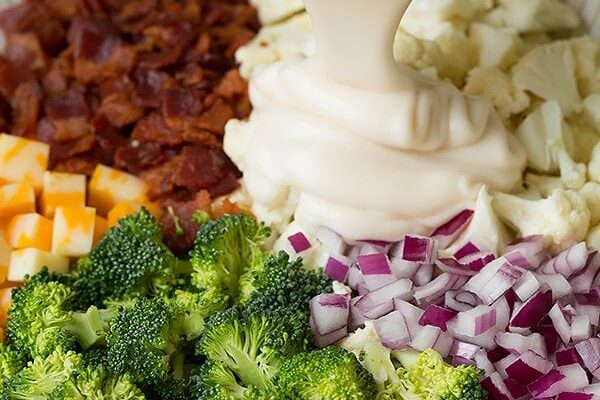 86. Broccoli and Cauliflower Salad – There are always so many options at a potluck, but here is one that’s somewhat healthy.