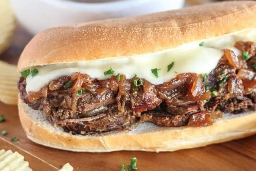 40. French Dips – Tender meat, prepped in a slow cooker, crusty bread, sweet onions, melty cheese, and a bowl of au jus for dipping. I’m in!