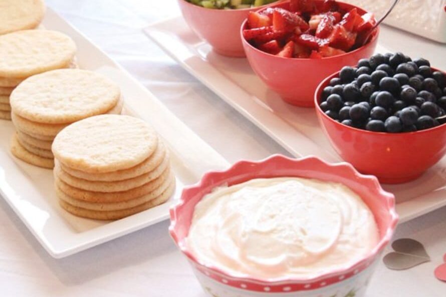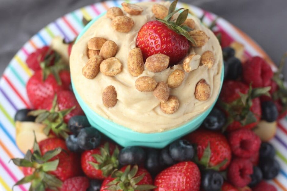 27. Peanut Butter Cheesecake Fruit Dip – This sweet dip is perfect for a girls’ night in!