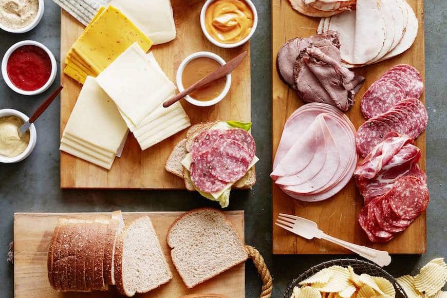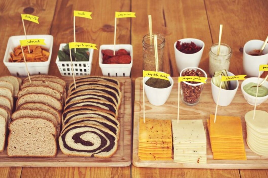 51. Sandwich Bar – Lay out a variety of bread, lunch meats, cheeses, salad dressings, and condiments for a fun and easy sandwich bar.