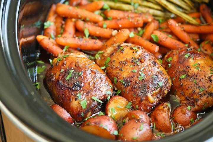 39. Honey Garlic Chicken and Veggies – Slow cooker for the win! This is seriously a one-pot dish with everything you need for a super comforting meal.