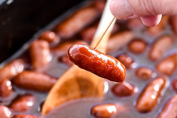 26. Slow Cooker Smokies – Little Smokies are a must-have at any party during the holiday season.