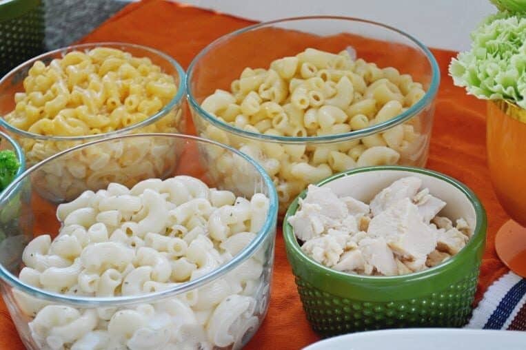 53. Macaroni and Cheese Bar – Serve a big batch of your favorite macaroni and cheese recipe then offer a variety of toppings such as bacon, ham, green onions, tomatoes, ground beef, sausage, seasoned bread crumbs, salsa, and jalapeños.