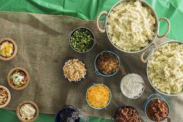 57. Mashed Potato Bar – Try serving those mashed potatoes in unique glasses or bowls to make it extra special.