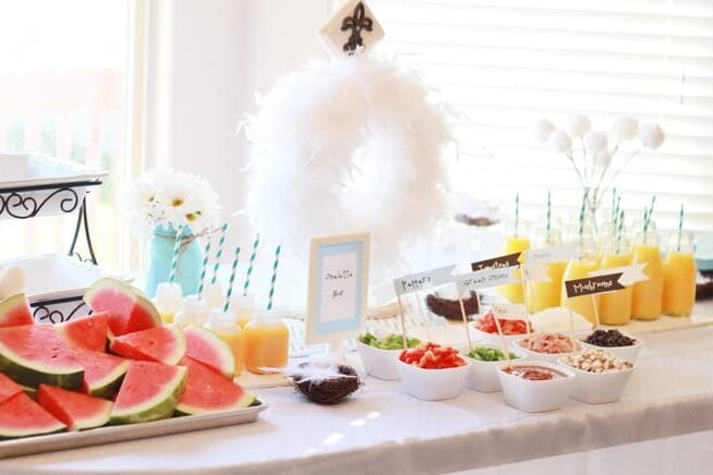 54. Omelet Bar – Set out toppings like salsa, ham, mushrooms, onion, and spinach, and let your guests choose their own omelet mix-ins for a meal and activity rolled into one!