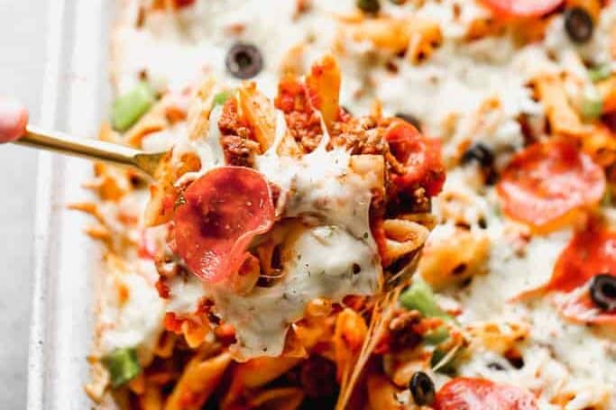 85. Pizza Casserole – This neat idea is a pizza in casserole form, and we think it’s one of the BEST meals for a crowd.
