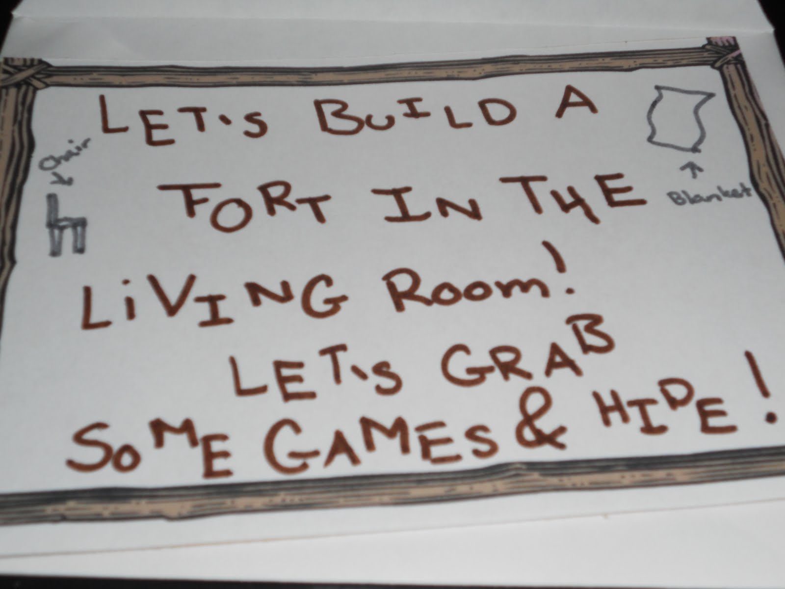 Saturday morning my husband woke up and went to the gym which was great because it gave me time to prepare for his arrival. When he got home he found a note taped to the door outside that read: