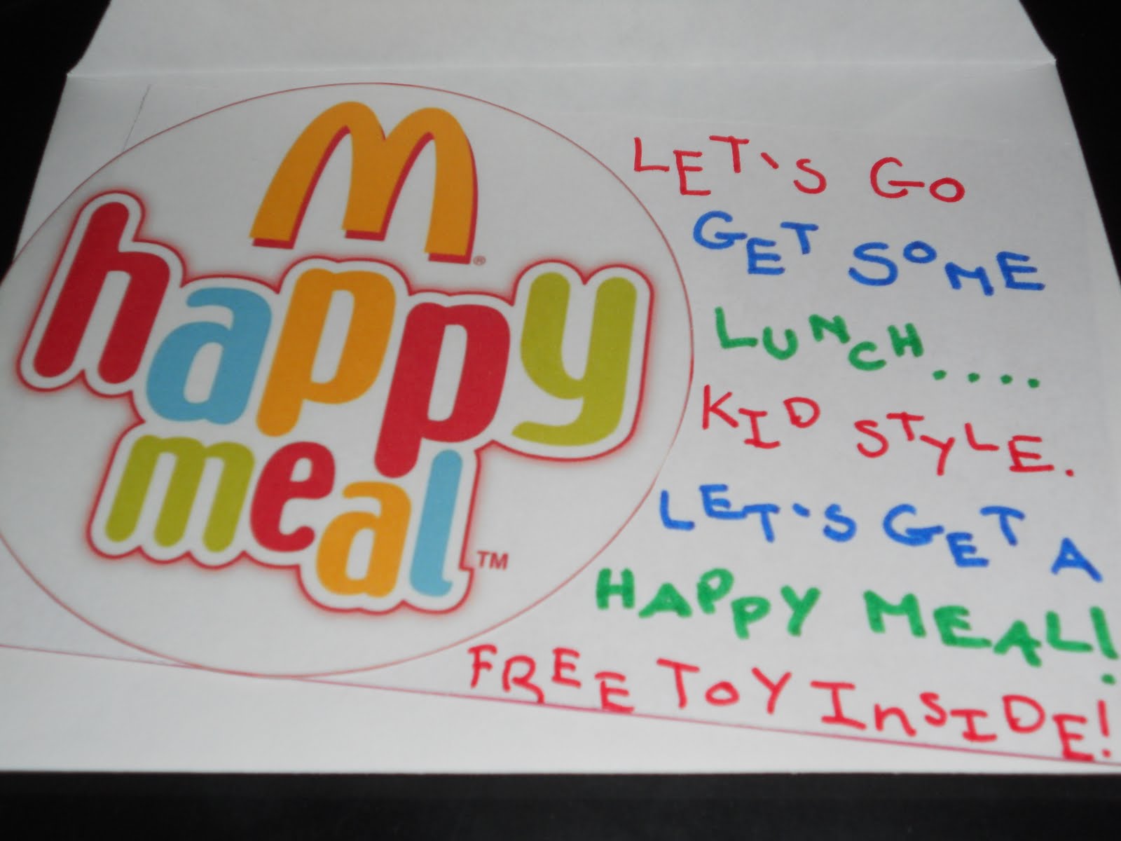 Fun, huh! Well, we ended up going to Wendy’s instead and we also ended up getting things other than Kid’s meals. The reason being that it wasn’t going to fill up my husband, but I still got chicken nuggets which was fun. After lunch he got the next card:
