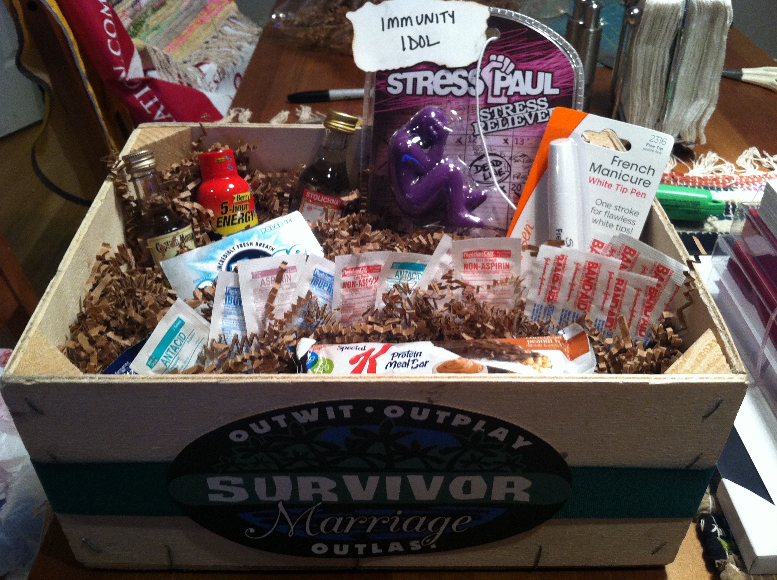 - Survivor-Themed Care Package – This survival-themed care package is the perfect gift to let your spouse know that you love them, miss them, and want them back!