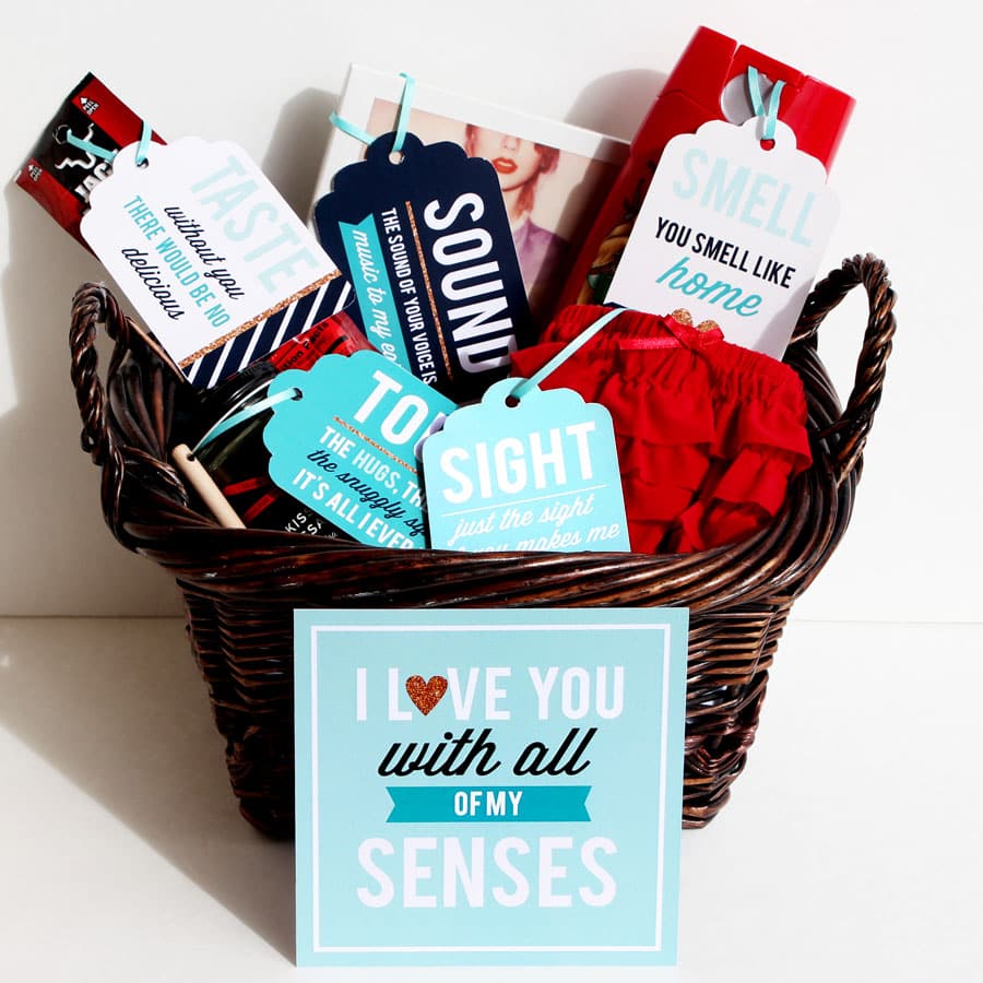 Create a fun five senses gift basket for your love by pairing our exclusive printables with his or her favorite items. We’ve included a beautiful tag for each of the senses. All you need to do is find the coordinating gift!