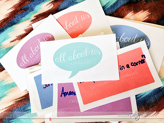 31. All About Us Charades – A charades game that can be played over and over – it’s tailored to you and your spouse and what you want out of couple’s games!