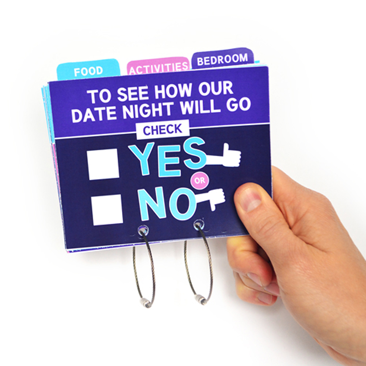 The activities for this date night are separated into three categories: Food, Activities, and Bedroom 😉 oo-la-la! I set them up in a style reminiscent of a Rolodex so if you are skipping activities, you know where to jump! I just used little cable key rings to keep mine together.
