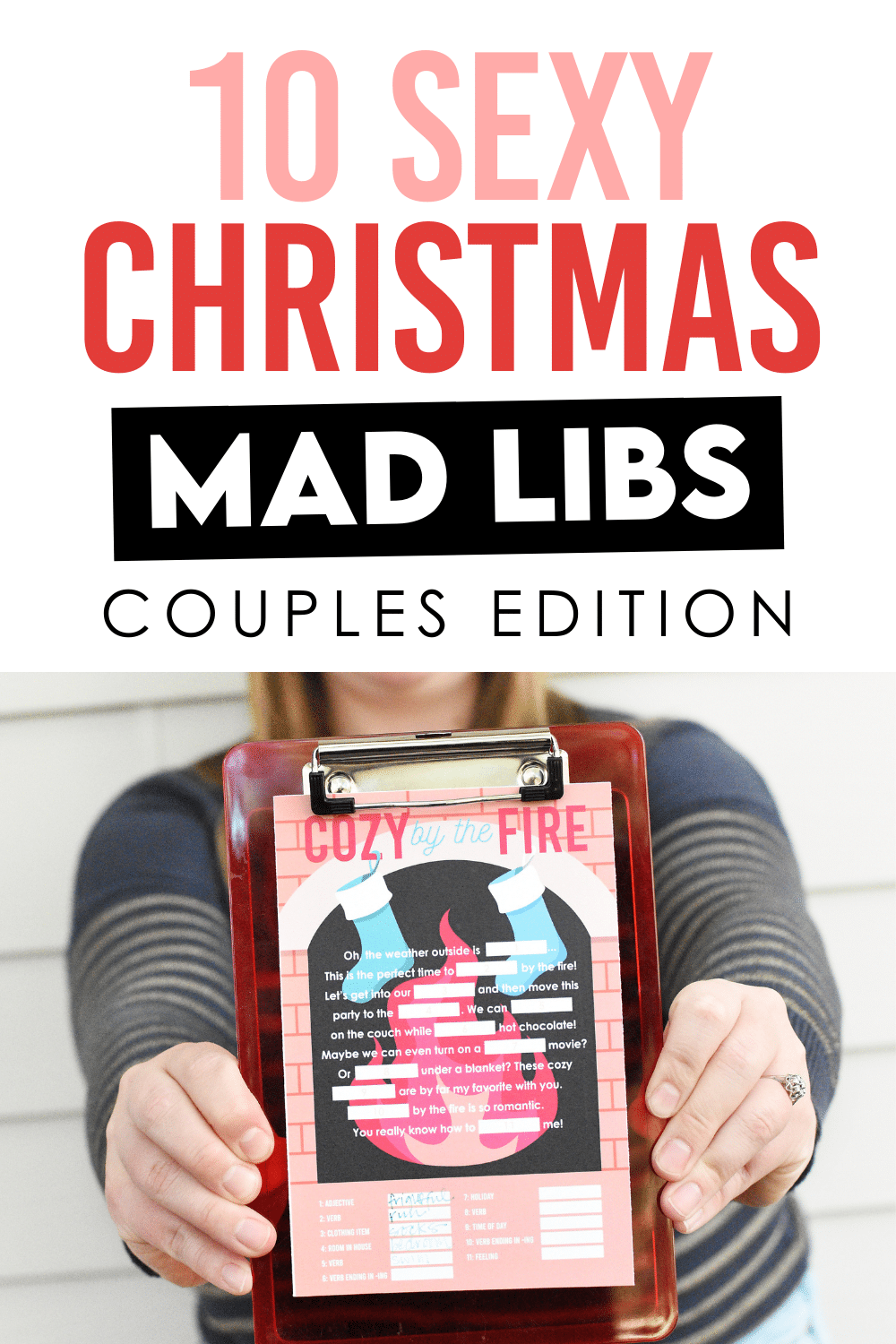 So …. with the hope of getting you to take a few moments to relax AND have a little fun with your sweetie, we’ve created FIVE hilariously sexy mad libs for adults that will ring in the Christmas spirit! The best part? They’re super sexy! 😉 These Christmas mad libs are short and sweet, but we promise you’ll be laughing your stockings off!