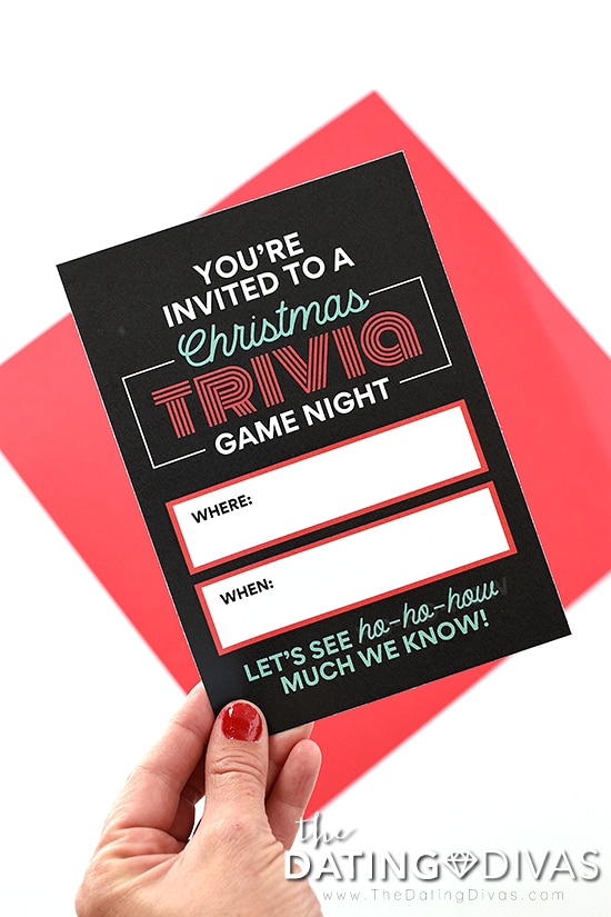 - Christmas Trivia Game Night Invite – Simply fill in the details and pass along to your guest list (or just your sweetheart if it’s for date night!)