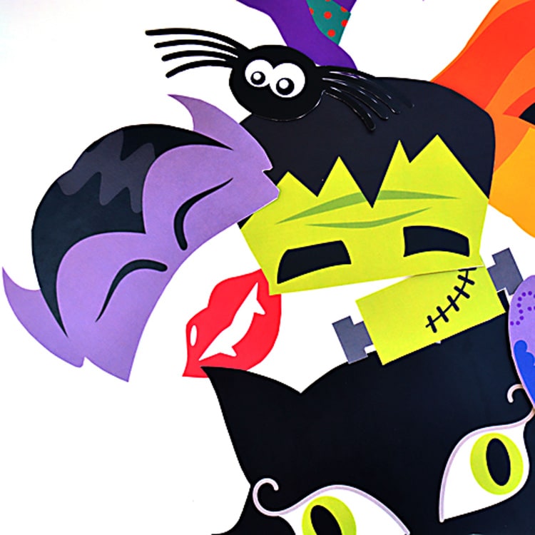 Amanda created 5 different masks/props that you can print in color OR black and white. If you print out the color version, simply cut, tape a bamboo skewer kind of like these to each piece, and you are done! We even laminated ours before attaching the skewer because we love them that much! These babies are coming out EVERY year! (PS – this is a laminator we highly recommend!)