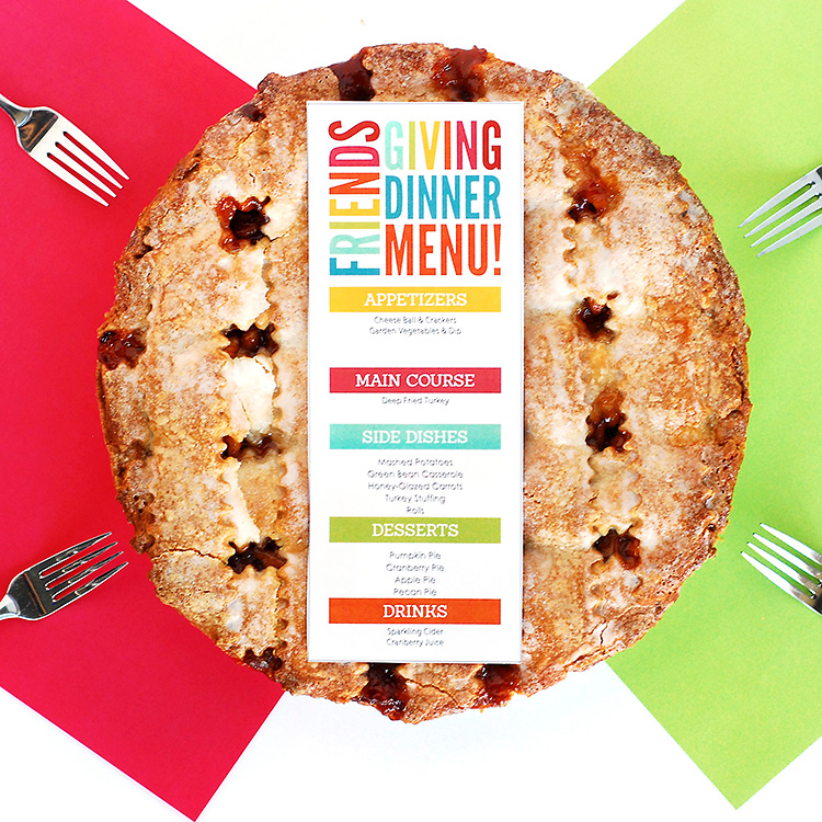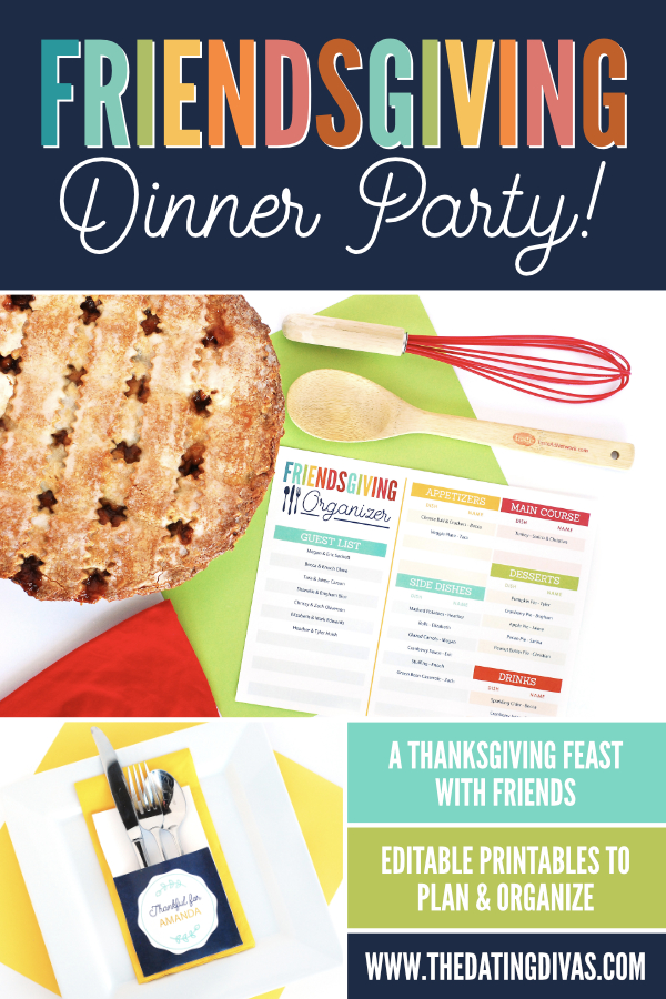 To get everything organized for your Friendsgiving dinner event, we have this handy-dandy printable organizer that can also be edited on the computer. It has a place for you to type up your invited guests and to organize what food will be served. If you are going to do a potluck style and want to make assignments, you will definitely want this to keep track of who is bringing what. We would hate to have too many salads and not enough pie.