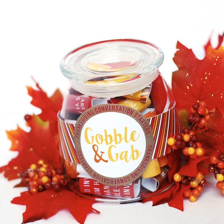 Get the conversation focused on the meaning of Thanksgiving with these unique Thanksgiving conversation starters! When your family is gathered at the dinner table on Thanksgiving day, add this easy to make jar with Thanksgiving questions to ask around the table. You’re sure to get the entire family talking – together! The included Thanksgiving conversation starters all center around gratitude and the Thanksgiving holiday. This gives your family a chance to really focus on the purpose of the day – instead of just the food!