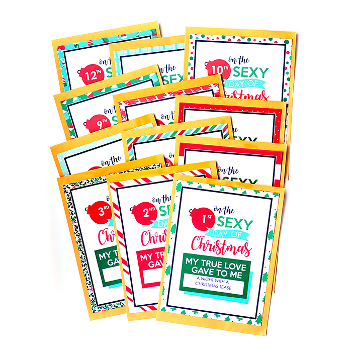 - Sexy Christmas Activities & Gift Tags – Your kit includes printable activities and gift tags for each of the 12 days of your countdown. We’ve also included simple gift ideas for each day to really take things to the next level.