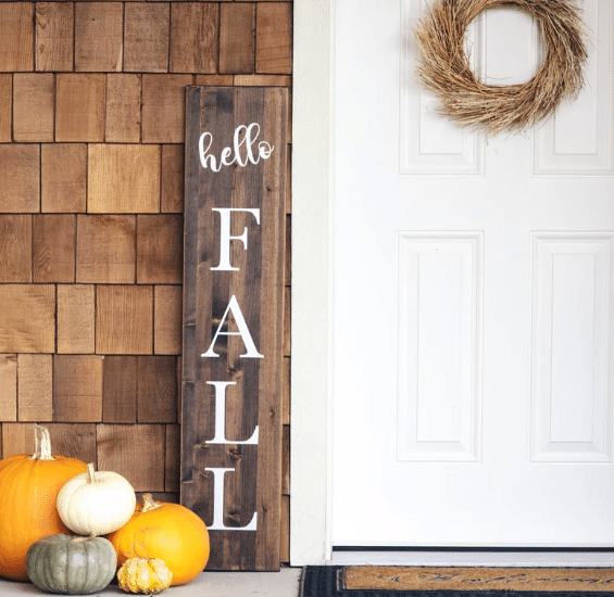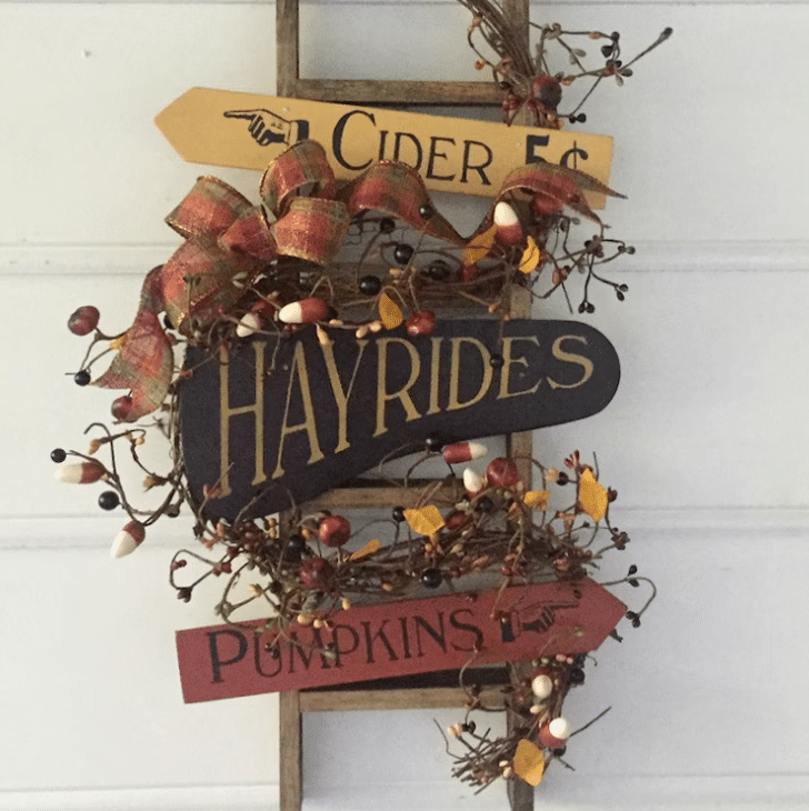 28. Fall Ladder Sign: You could display this in several areas of your home, including using it as a door hanger!