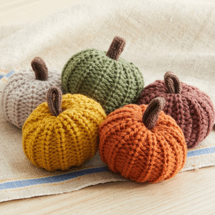 23. Mini Knit Pumpkins: We’re currently obsessed with anything knitted, so these are a must for our fall decor ideas! Perfect as bowl fillers, shelf decor, or to fill up your tiered trays.