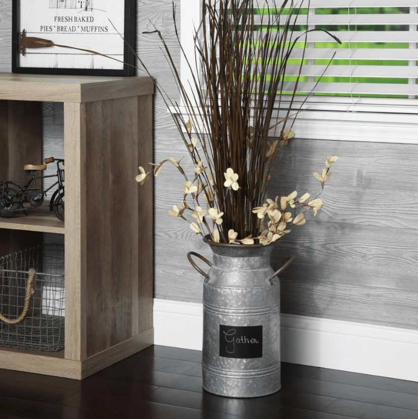49. Milk Can Vase with Chalkboard: You could write so many different fall-like sayings on this chalkboard vase!