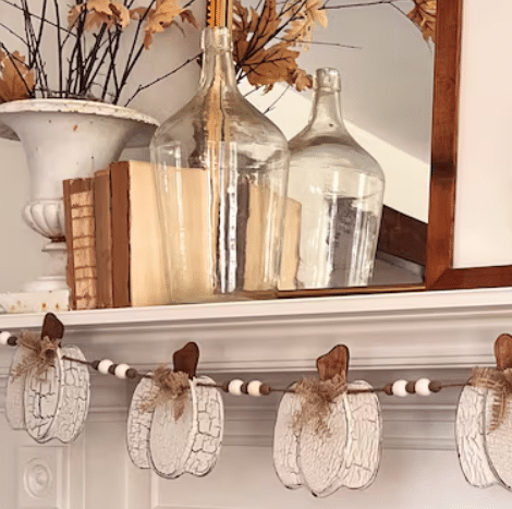 31. Crackled Pumpkin Wood Bunting Garland: What a cute way to spruce up your mantel!