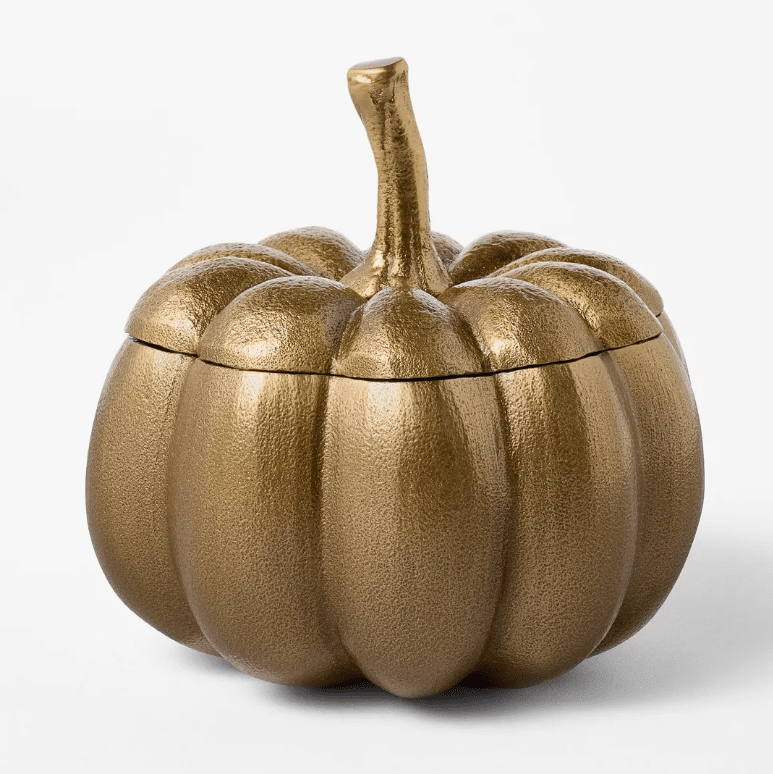 44. Aluminum Pumpkin with Lid: How perfect would this be for storing your favorite fall candy (like fall-colored M&Ms) or even matches for your fall-scented candles!
