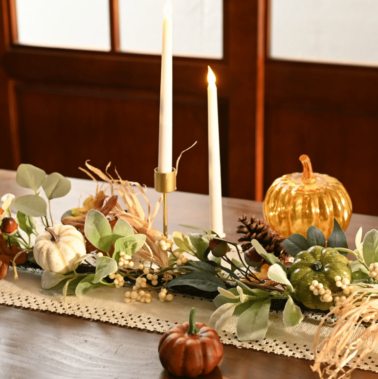 46. Tabletop Fall Garland: This garland is pre-lit, so it’ll give your dining room a gorgeous glow!