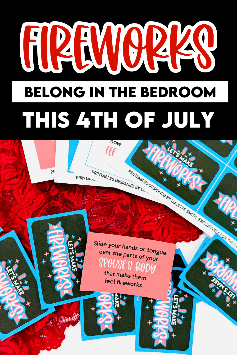 Throughout the month of July, you’ll notice red, white, and blue everywhere! With that in mind, we decided it would be fun to create a bedroom game celebrating red, white, and the two of you!