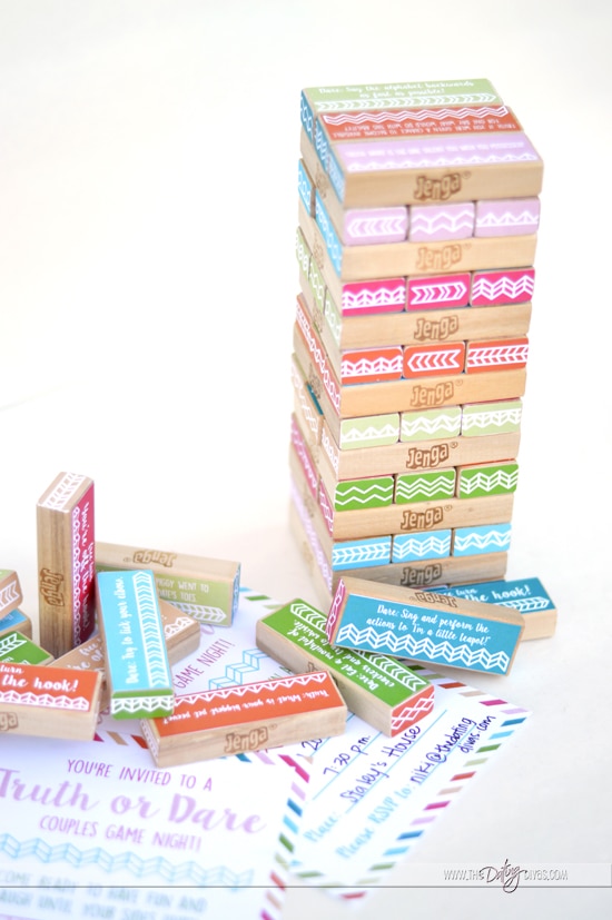 Game night is one of my favorite ways to bring all of our favorite couples together – Add some truth or dare Jenga in and you have yourself the funniest couples date night of all time! This Truth or Dare couples date night idea was a TOTAL blast!! I mean we are talking laughing till your sides hurt, almost pee your pants, can’t stop smiling kind of fun!!