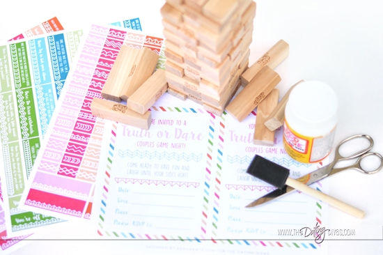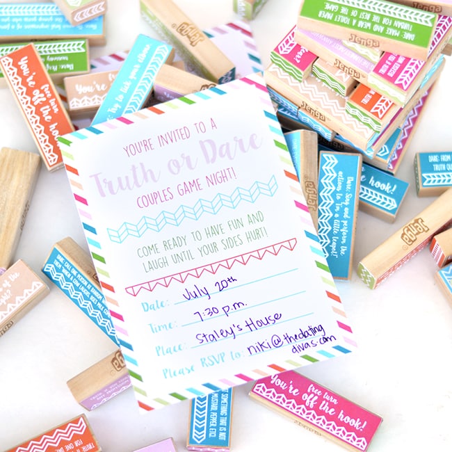 Yay!! You are all finished with the actual game making process now and ready to laugh uncontrollably with all of your favorite date night friends!! With your game ready to go, fill out the required info on the invitation and invite your BFFs over for a game that no one will forget anytime soon!!