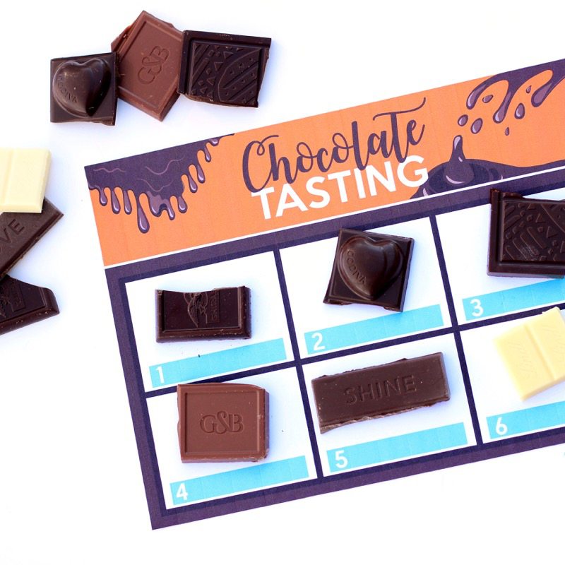 So what do you need to get this delicious party started? Definitely grab our chocolate tasting printables below and get those cut and prepped. And now let’s go over how to host a chocolate party! Whether it’s just going to be you and your spouse for a date night in, or you have a group of friends that would love to participate in all of your fun chocolate party ideas, we have all the info you will need.